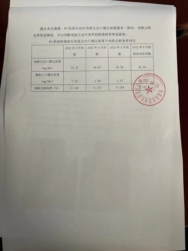 依欣环境自主研发的二氧化碳在火力发电厂电除尘极板极线清洗技术获得华能沁北电厂电除尘检修清洗中应用,通过清洗,由于清洗效果彻底、清洗效率高、清洗过程中无污水产生等优点获得华能沁北电厂的好评。